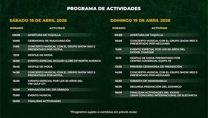Conciertos, desfiles de moda, homenajes y presentaciones especiales complementan este encuentro anual, que trasciende lo automotriz para convertirse en una experiencia social y cultural de gran nivel.
